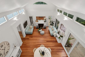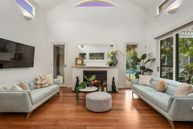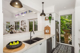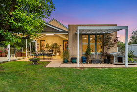 The Piece de resistance of this property is found as you make your way into the kitchen, showcasing 2pac painted shaker style cabinetry, 40mm stone benches, half shell handles, De'Longhi 900mm freestanding Victorian style gas cooktop/oven, upgraded olive sink with Franke tapware, plenty of overhead cabinets, all further complimented by the double door pantry but also the walk-in pantry. The show stopping kitchen overlooks the open plan living/meals area. While being drafted by architects, this space was designed to have optimised sunlight, the 15ft ceilings, with floor windows and slimline high windows allowing the space to be flooded with natural light at any given moment throughout the day! If this wasn't enough, the gas fireplace will ensure those chilly months are a breeze! Making your way down the hall, you will find the three generously sized bedrooms, all containing built-in robes, stunning views of the surrounding gardens and are all serviced by the bright recently updated main bathroom.