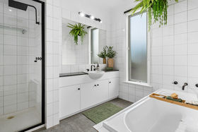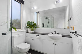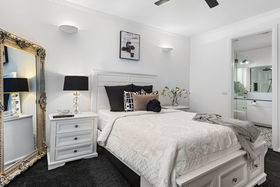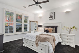 The moment you arrive at the bowl of the court, you will notice the bold architecturally designed facade! The fresh render complimenting the established gardens. As you make your way into the property you will notice the pencil pines, boxed hedges and lush green grass, the concrete driveway leads you along the path to the front porch! Walking through the front door you will be amazed by the 15ft ceiling void, with signature slim line windows, drowning the encaustic tiles in natural sunlight. The master bedroom is situated at the front of the property, not only showcasing an abundance of space, but key upgrades such as triple set cornicing, wall feature lights, plantation shutters and a ceiling fan. The walk-in robe boasts plenty of storage while the renovated ensuite features more encaustic tiling, floor to ceiling wall tiles, matt black fixtures and upgraded fittings.