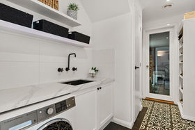 Sitting across the master bedroom is the family theatre room, large enough to host the whole family for those movie nights, while the darkened room enhances the cinema experience. The stairwell to your right leads you to the loft. Offering a bedroom with a crazy amount of storage, a study as well as its own retreat overlooking the living/meals area, this space is the perfect fit for the guests of the family or the teenagers lucky enough to get their own space! The renovated laundry accommodates the whole family with the amount of storage on offer, but allows you to wash the family's clothes in style as it's been tastefully renovated with stone benches, upgraded tap ware, a shoe rack and direct access into your double car garage.