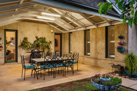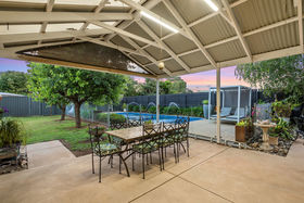 Heading outside is easily done via many doors, but heading straight out of the lounge will see you in the oversized pergola. With a massive pitch, this space offers enough room to entertain the whole family and friends while overlooking the many features of this paradise. The double car garage offers drive through access to accommodate additional cars or trailers, while the extended concreted is lined with established mature gardens featuring beautiful silver birches standing over 20 ft tall. The salt chlorinated pool is the star of the backyard, providing the entertainment for the family, friends and even neighbours, the water fountains and lights ensure it is also easy on the eyes. The already in use planter boxes down the side ensure the green thumb of the family has their veggies/herb gardens. While the open grassed area is perfect for the kids/pets to run and play. The back section of the property is securely fenced around but also has the netting above to provide a safe for chickens or cats alike. The entire backyard is secured by upgraded bamboo fencing secured to Colourbond.