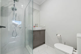 Upon arrival at the home, you are first greeted with a modern façade with low maintenance landscaping. Entering the home you'll find the main bedroom, featuring a walk-in robe and a sleek ensuite with porcelain marble tiles. The three additional bedrooms with built-in robes are serviced by a stunning and bright central bathroom featuring porcelain marble tiles and a wall mounted bath.