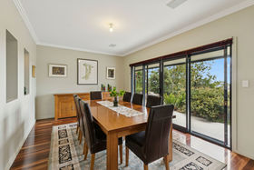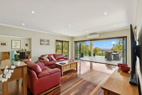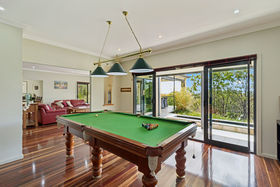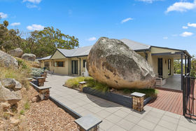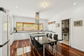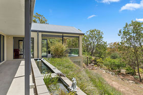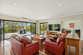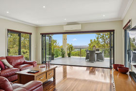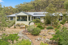 Arrive and be captivated. Guests are instinctively drawn not to the front door, but to the expansive verandah that wraps around the home - framed by manicured gardens, commanding valley vistas, and the striking architectural detail of a giant natural boulder seamlessly integrated into the verandah's design. Enter through the grand six-panel bifold doors to reveal exquisite grey ironbark flooring and an interior that blends generosity of space with warmth and elegance.