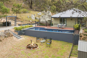 From September to April, the heated pool becomes the heart of the estate - ideal for sun-drenched afternoons, leisurely breakfasts by the water, and serene mornings with coffee in hand on the adjoining deck. For the more adventurous, a climb through the property's dynamic boulder-strewn hillside rewards you with expansive views and abundant birdlife. As the day winds down, retreat to the indulgent two-person spa with a glass of champagne in hand.